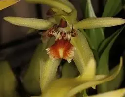 花茎很短,被短柔毛;总状花序通常具2朵花,罕3-6朵花,常偏向一侧;花苞片披针形,长1.5-2.5厘米,宽6-7毫米,先端渐尖,背面被短柔毛;子房圆柱状纺锤形,连花梗长5-8毫米,被短柔毛;花大,长管状,白色或带粉红色,萼片线状披针形,近等长,背面被短柔毛,长(2-)2.5厘米,宽3-4毫米,先端稍钝,中萼片与花瓣粘合呈兜状。