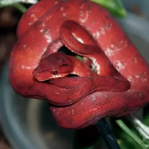 :本种在我国已知数量甚少,大规模毁林造田,砍伐树木,其栖息环境日益减少,此蛇更难存活。