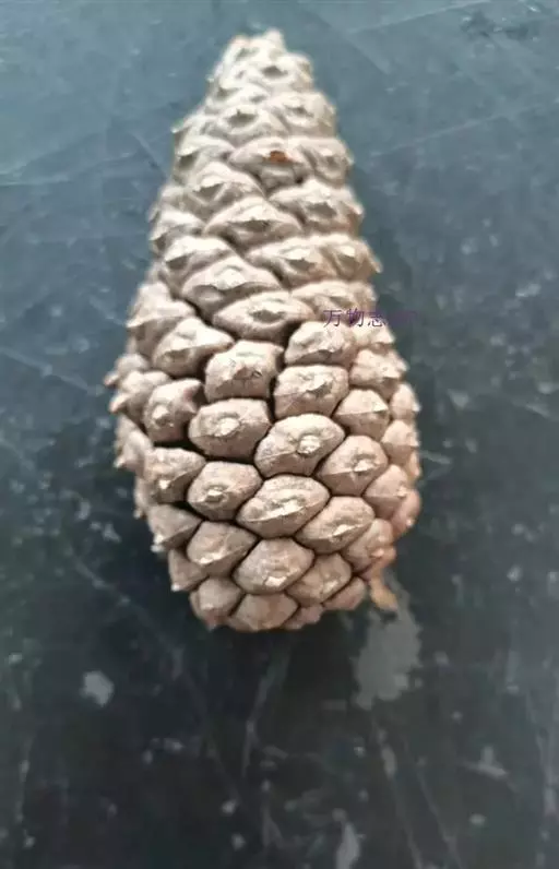 球果2年成熟,熟时种鳞张开,稀不张开,卵形、长卵形、近圆形或圆柱形,直立或下垂;种鳞木质,宿存,上面露出部分通常肥厚为鳞盾,有明显横脊或无横脊,鳞盾的先端或中央多具瘤状凸起或微凹的鳞脐,有刺或无刺,发育种鳞具2种;种子上部具上翅,子叶3~18,发芽时出土。