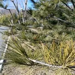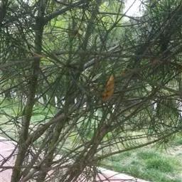 ⑶大部分针叶变为黄褐色,萎蔫,可见松褐天牛的蛀屑;
