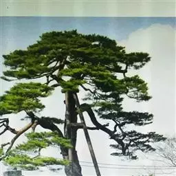 松画艺术:松树具有阳刚之美,它的枝干更是具有柔中有刚的特征,松的叶给人以清脱之感。它是我们民族心目中的吉祥树,是常青不老的象征。松树,有的像虬龙,故称虬松,其枝干多变,直处坦率,弯曲内含,显出龙探青山之状;也有的曲中有直,变化非凡,似蛟龙入海之态;有的巨臂遮天,挺拔刚毅,有拔地钻云腾飞之势也。松树是山水画中应用最多的树木之一,无论是旷野还是山巅,都生长有松树。松树还可以作为主体形象表现。生长在肥沃平地的松树高大茂盛,常常挺拔高入云际;生长在山石空隙的,常常蜿蜒曲折,盘地如苍龙。它们共同的特点是:生长到一定年龄,枝干就不再往高处长,而枝多横出,形成伞状,“枝如游龙,叶如翔凤”。画松,首先要“有情而动”,唐末五代山水画大师荆浩,他见到体态优美的松树,就“因警其异,遍而赏之。明日携笔复写之,凡数万本,方如其真”。这个“真”,不是形同照相,而是抓住了松树的灵魂,因此才能描绘出松树的“皮老苍藓,翔鳞乘空”“蟠虬之势,欲附云汉”,或“抱节自屈”,或“回根出土”,正因为荆浩对松树怀有深情,才能做到认真观察与研究,悟到画松的妙理。