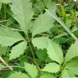 五叶爬山虎(P.quinquefolia),幼枝圆柱状。叶小,5枚。产中美洲。
