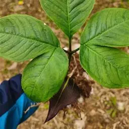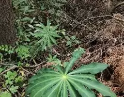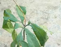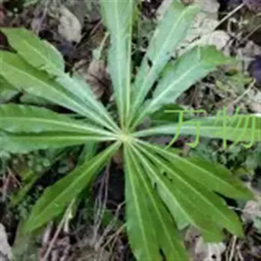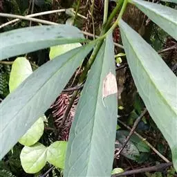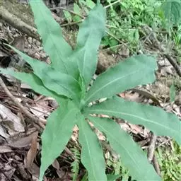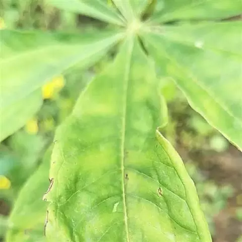 叶11,叶柄长10-18厘米,纤细,下部1/2具狭鞘;叶片鸟足状分裂,裂片5,椭圆形,锐尖,基部楔形,侧脉细弱,斜伸,集合脉距边缘0.5-1.5毫米,中裂片具长3毫米的柄或近无柄,长4-5厘米,宽1.4-2厘米;侧裂片具长3毫米共同的短柄,长3.5-4厘米,宽0.8-1.4厘米。