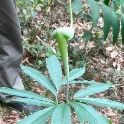 黄苞南星 Schott)是天南星科、天南星属植物,块茎近球形,鳞叶锐尖,叶片鸟足状分裂,…