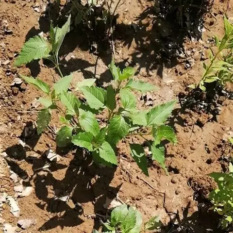 扦插:选择生长健壮、无病虫害的植株,挖取其根系,剪成15-20厘米长的根段,按株行距20厘米×30厘米进行栽植,埋土压实,浇水,约10天,可生根发芽,得到幼苗,扦插时将有芽的一端向上栽植。