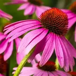 松果菊是菊科松果菊属多年生草本植物。全株有粗毛,茎直立;叶片生长健壮,基生叶为卵形或三角形,…