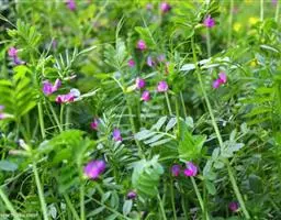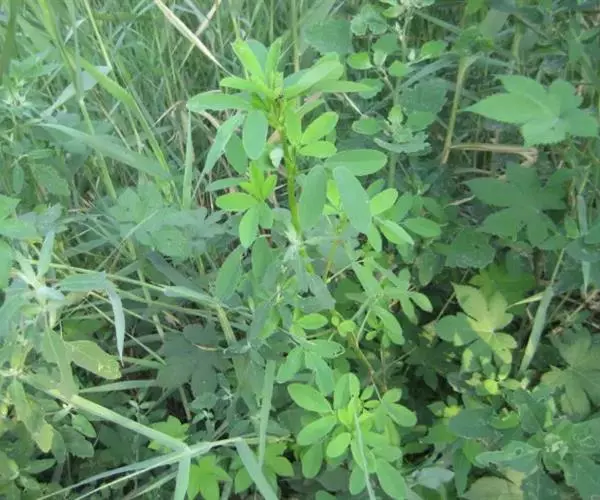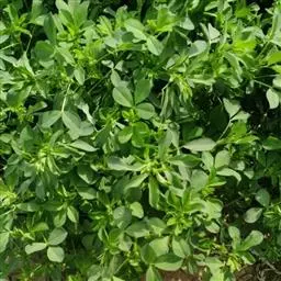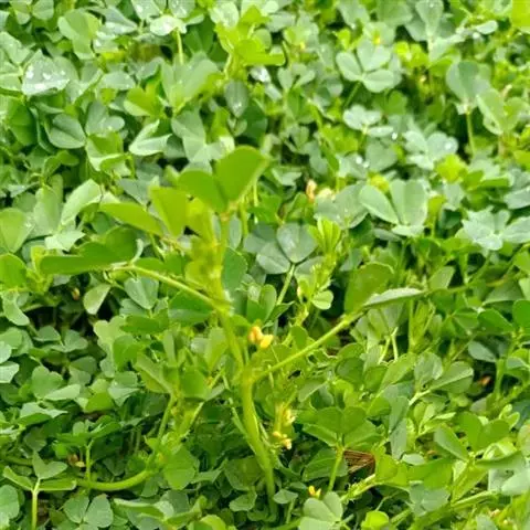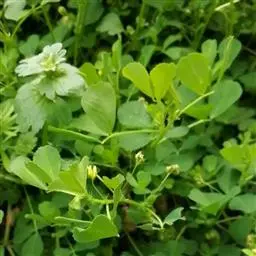 南苜蓿在荚果成熟期一次性收获的干物质产量高达10.3吨/公顷;在营养期的干物质产量达5.98吨/公顷,茎叶比为1:0.7。营养成分为:干物质91.8%、粗蛋白24.5%、粗脂肪2.5%、粗灰分14.0%、粗纤维18.6%、钙0.63%和磷0.38%。南苜蓿每100克鲜茎叶含胡萝卜素约31.5毫克、核黄素0.22毫克、钙168毫克。此外,它还含有植物皂素,植物皂素能和人体的胆固醇结合,促使其增加排泄,从而大大降低胆固醇含量,对防治冠心病有益。由此可见,南苜蓿具有较高的饲用价值,不仅是草食家畜的优质饲料,也是猪鸡等单胃动物冬春较为理想的青绿饲料。另外,南苜蓿根系发达,结瘤效果较好,固氮肥地的能力较强。在州,冬闲土地种植南苜蓿对后作水稻的增产效果明显,每年冬春季的种植面积在1000公顷以上。