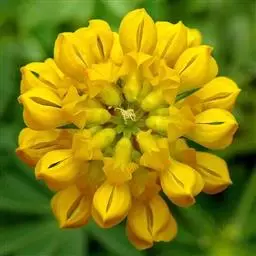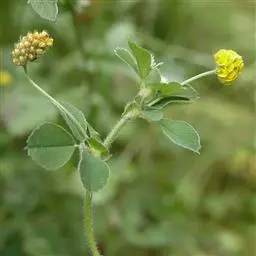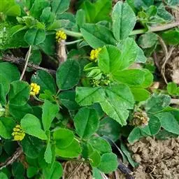 南苜蓿(学名:Medicago polymorpha L.)是豆科、苜蓿属的一、二年生草本植物,高可达90厘米。茎近四棱形,基部分枝,叶片卵状长圆形,先端渐尖,基部耳状,边缘具不整齐条裂,脉纹明显;叶柄细长柔软,花序头状伞形,总花梗腋生,纤细无毛,苞片甚小,尾尖;萼齿披针形,花冠黄色,旗瓣倒卵形,翼瓣长圆形,子房长圆形,种子长肾形,3-5月开花,5-6月结果。