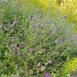 天蓝苜蓿是豆科,苜蓿属多年生草本植物。高可达60厘米,全株被柔毛或有腺毛。主根浅,须根发达。…