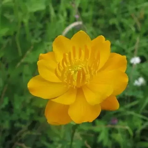 长白金莲花是毛茛科,金莲花属多年生草本植物,植株全部无毛。茎高可达55厘米,基生叶有长柄,…