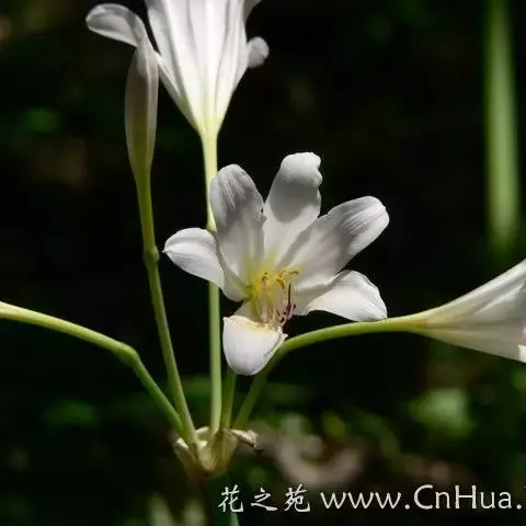 长筒石蒜草本,地生。鳞茎卵球形;叶披针形;伞形花序,有花5-7朵,花白色;花被裂片腹面稍有淡红色条纹,…