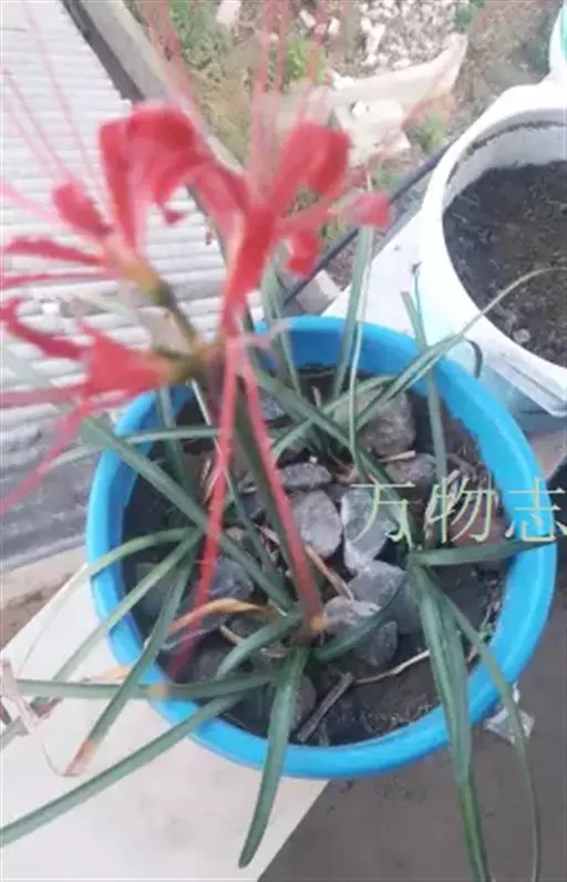 石蒜 Herb.):鳞茎近球形。秋季出叶,叶狭带状,顶端钝,深绿色,中间有粉绿色带;花茎高约30厘…