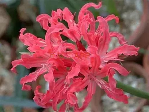 稻草石蒜草本,地生。鳞茎近球形;叶带状;伞形花序,有花5-7朵,花稻草色;花被裂片腹面散生少数粉红…
