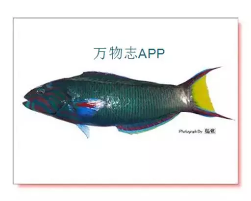 体侧扁。幼鱼背部黄而腹部白,背鳍与尾柄具黑斑;雌鱼草绿色,头部具粉红放射纹,尾鳍截形;雄鱼为宝蓝色,头部仍有花纹,特征是胸鳍紫红色且尾鳍中央亮黄色。
