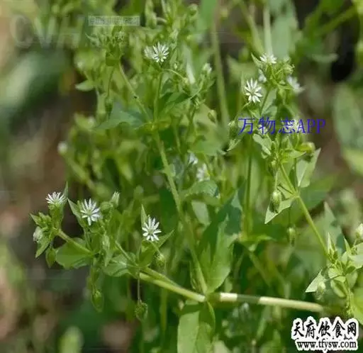 【营养成分】:每百克鲜品含水分91.6 克,蛋白 牛繁缕 质3.6 克,脂肪0.3 克,纤维素1.2 克,钙0.22 毫克,磷0.03 毫克,还含有多种维生素等成分。