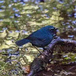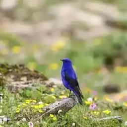 蓝大翅鸲是鹟科、大翅鸲属小型鸟类,体长19-21厘米。两翅尖长。雄鸟通体鲜紫蓝色具金属光泽。…