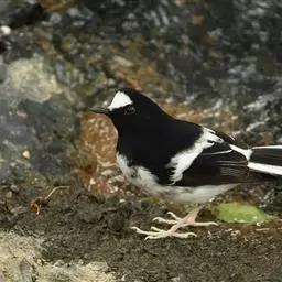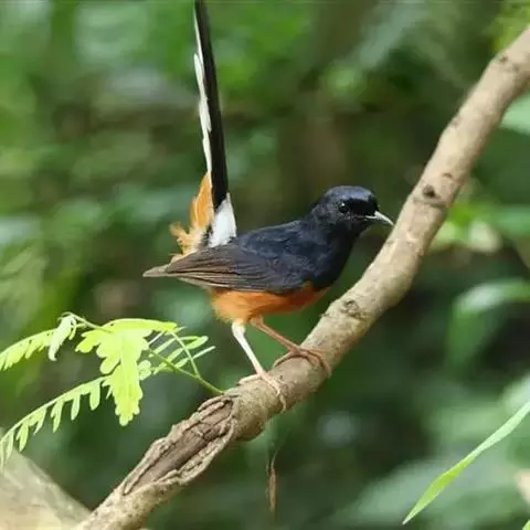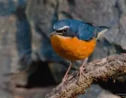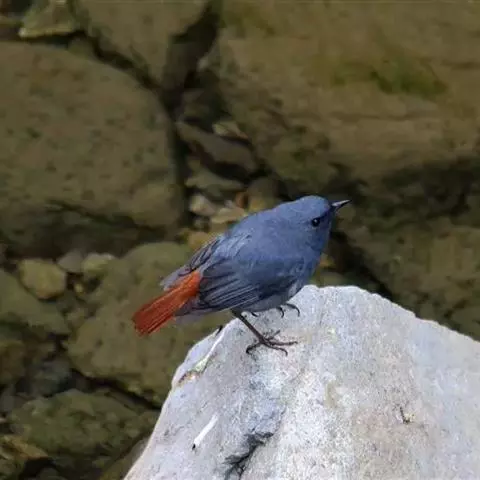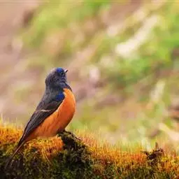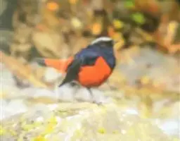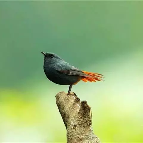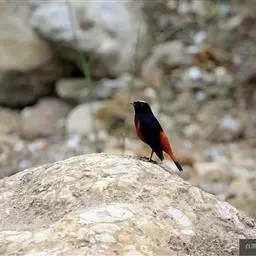 赭红尾鸲:小型鸟类,体长13-16厘米。雄鸟前额、头侧、颈侧、颏至胸概黑色,头顶和背灰色或黑色,…