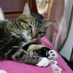 狸花猫 猫爪是猫捕鼠、攀登和自卫的工具。如果主人养猫是为了捕鼠,当然不能修剪脚爪。如果主人养猫是作为伴侣动物的话,就应经常给猫修剪脚爪,以避免抓伤人,抓坏衣服、家具、地板等。修剪脚爪应从小开始,1月左右1次。