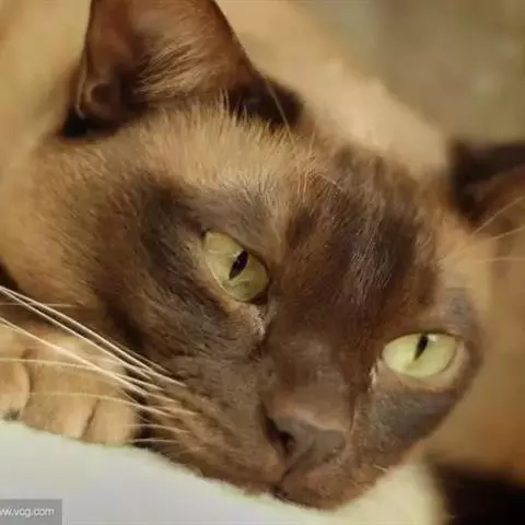下巴发达,平坦。 眼睛: 眼睛大且明亮。眼周有明显的淡黄色勾勒圈。外眼角高于内眼角,呈稍向上吊起式,眼睛长度大于圆度。眼外侧眼角有分明的黑色的眼线,此线与胡须根部发出的黑色线条颈下的