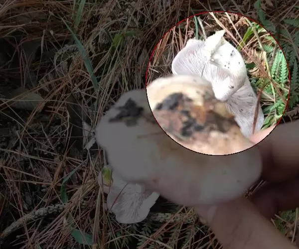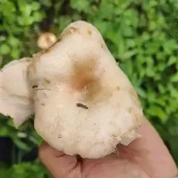 谣言三:看分泌物。将采摘的新鲜野蘑菇撕断菌株,无毒的分泌物清亮如水(个别为白色),菌面撕断不变色;有毒的分泌物稠浓,呈赤褐色,撕断后在空气中易变色。