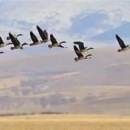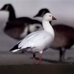 雪雁是鸭科雁属鸟类,雁属中体形大,个体重的鸟类。羽毛洁白,翼角黑色。飞行时双翼拍打用力,振翅频率高。…