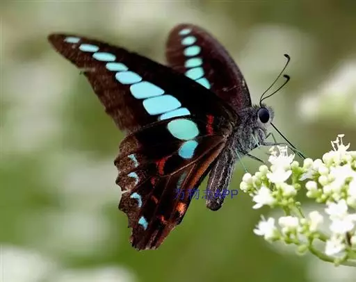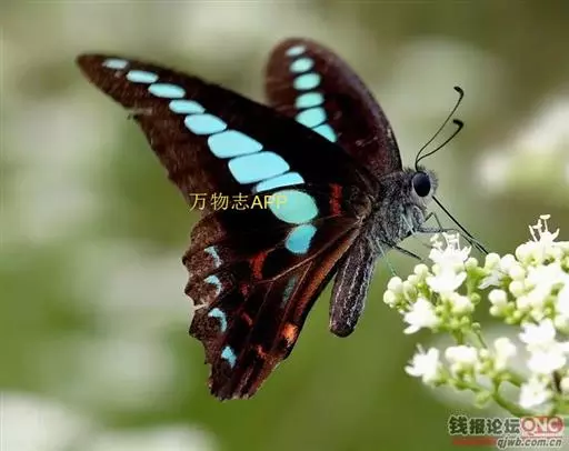 青带凤蝶Graphium sarpedon ,又名青凤蝶,是最普遍的中型凤蝶,飞行速度很快。青带凤…