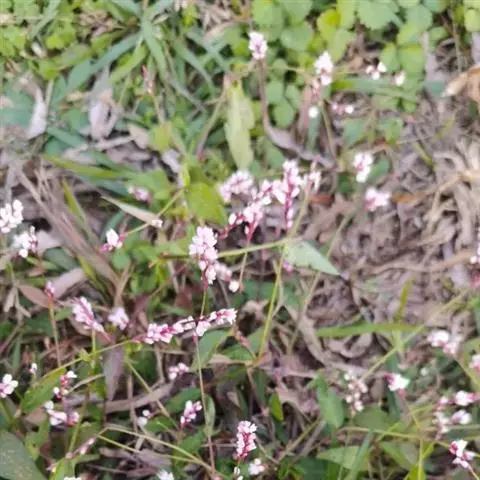 竹节蓼一般在夏天开花,花就开在扁化茎或者扁化枝两侧分节的地方,大多呈绿白色或者淡红色,花朵很小,只有米粒那么大。不过就像人们说的,麻雀虽小,五脏俱全,即使是这么小的花朵,雄蕊、雌蕊、花柱、花被也是一样不缺,大自然的美丽和精巧,在这么小的一朵花上也能体现出来。