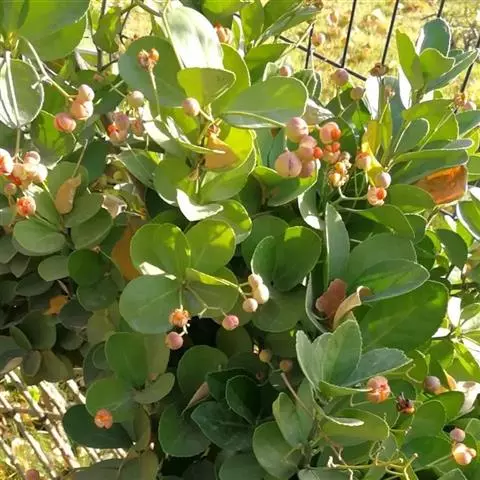 肉花卫矛(学名:Euonymus carnosus Hemsl.)是卫矛科卫矛属的植物,半常绿乔木或灌木,高达10米。叶对生,呈长圆状椭圆形,长5-15厘米,宽3-9厘米。聚伞花序有花5-15朵,花董绿色或黄白色。蒴果近球形,假种皮红色。花期5-6月,果期8-10月。