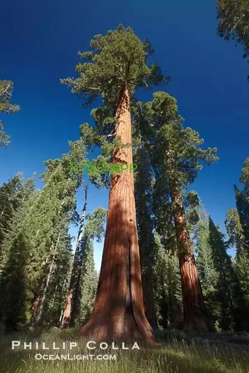 世界公认的最大的巨杉是一株被尊称为“谢尔曼将军”的巨树。它高83米多,树干基部直径超过了11米,30米处的树干直径仍有6米左右,甚至在40米高处生出的一个枝权就粗2米,令世界上许多高三四十米的大树望尘莫及。1985年科学家根据它的木材比重进行了测算,认为“谢尔曼将军”树重2800吨。据估计,“谢尔曼将军”树可以制作出55753平方米板材,如果用它钉一个大木箱的话,足可以装进一艘万吨级的远洋轮船。这株巨杉受到了美国政府的特别保护,在内华达山脉西侧的红杉国家公园中。