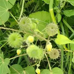 苘麻锦葵科苘麻属一年生亚灌木草本植物。茎秆较高,上面有柔毛;叶子较大且有纹路,浅绿色,边缘不平整,…