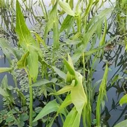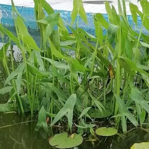 慈姑(学名:Sagittaria trifolia L. var. sinensis (Sims.) Makino )泽泻科多年生草本植物,生在水田里,叶子像箭头,开白花。地下有球茎,黄白色或青白色,以球茎作蔬菜食用。可以吃。也作茨菰。本变种与原变种不同在于:植株高大,粗壮;叶片宽大,肥厚,顶裂片先端钝圆,卵形至宽卵形;匍匐茎末端膨大呈球茎,球茎卵圆形或球形,可达5-8×4-6厘米;圆锥花序高大,长20-60厘米,有时可达80厘米以上,着生于下部,具1-2轮雌花,主轴雌花3-4轮,位于侧枝之上;雄花多轮,生于上部,组成大型圆锥花序,果期常斜卧水中;果期花托扁球形,直径4-5毫米,高约3毫米。种子褐色,具小凸起。