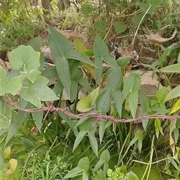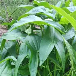 • 野芋是天南星科芋属一年生湿生草本植物。块茎球形;叶柄直立肥厚,长达1米以上;叶片薄革质盾状,…