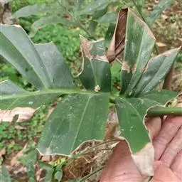 该病常在6月以后高温多湿的天气发生,叶上症状有3种类型。一是叶片上出现淡绿色圆形小斑点,以后逐渐变为黄绿色痘状突起斑疱,所以又叫“疱疱病”。病部常有白色浆液流出,最后病疱枯黄破裂,有许多黑色粉粒散出,有时疱状突起全部脱落为孔状。二是叶上着生黄褐色肿斑,后干缩破裂脱落呈破网状的孔洞。三是叶面出现褐绿或橙黄色病斑,边缘不明显,表皮下生许多黑色小点,叶背初为黄白色,后表皮破裂露出黑色孢子堆。叶柄病斑初为褪绿圆形小点,后发展成绿色椭圆形瘤状突起,上生纵沟;后期呈橘黄色瘤状突起,表皮破裂后可见许多黑色粉粒。根部症状不明显。发病严重时,整株叶片和叶柄都有无数的斑疱。