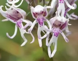 花瓣长圆形,长3毫米,宽2毫米,先端钝;唇瓣白色,3裂;侧裂片直立,三角形,中部向先端骤狭为钻状,有时稍向内弯曲;中裂片伸展,三角形,先端钝,上面在两侧裂片之间具1条脊突,与距内不甚发育的隔膜相连接;距内背壁上方的胼胝体近卵状三角形,基部稍2裂,其下部具乳突状毛;蕊柱长约2.5毫米,具翅;蕊喙三角形,伸出蕊柱翅之外;粘盘柄狭带状,边缘内折;粘盘小而厚,圆盘状;药帽前端收狭为喙状。花期6月。