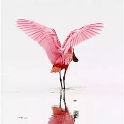 粉红琵鹭:体高87厘米,翼展127厘米,体重1300克,寿命10年。是一种大型涉禽。脚很长,喙长而…