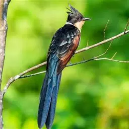 大杜鹃:是普通杜鹃的中国亚种。体长约320毫米,翅长约210毫米。雄鸟上体纯暗灰色;两翅暗褐,翅缘…