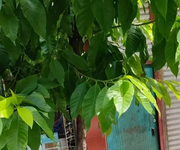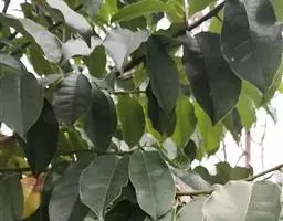 白兰是常绿乔木,高达17米,枝广展,呈阔伞形树冠;胸径可达50厘米;树皮灰色;揉枝叶有芳香;嫩枝及芽密被淡黄白色微柔毛,老时毛渐脱落。叶薄革质,长椭圆形或披针状椭圆形,长10-27厘米,宽4-9.5厘米,先端长渐尖或尾状渐尖,基部楔形,上面无毛,下面疏生微柔毛,干时两面网脉均很明显;叶柄长1.5-2厘米,疏被微柔毛;托叶痕达叶柄中部。
