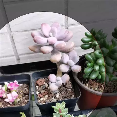 紫乐又名紫悦多肉(Graptopetalum ‘Snow-White),是景天科风车草属植物。可采用叶插或砍头爆小崽繁殖栽培,性喜阳光充足。