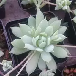 景天科风车草属的多肉植物,原产于墨西哥。株形和风车草属胧月极为相似。花瓣被蜡,叶排成延长的莲座状被…
