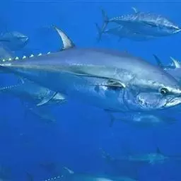 大西洋蓝鳍金枪鱼:是鲭形目、鲭科、金枪鱼属的海洋动物。体长可达3米,…