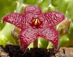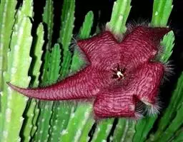 聚伞花序顶生,长22-32厘米,直径10-15厘米,总花梗三歧,长13-28厘米,肉质,被老时逐渐脱落的短柔毛;花梗被短柔毛或毛脱落,长约2厘米;花萼裂片小,阔卵形,顶端圆,不张开而压紧花冠筒;花冠深红色,花冠筒圆筒形,长1.5-1.7厘米,直径约3毫米;花冠裂片狭倒卵圆形或椭圆形,比花冠筒长,长3.5-4.5厘米,宽1.5-1.8厘米;雄蕊着生在花冠筒基部,花丝短,花药内藏;心皮2,离生;每心皮有胚珠多颗。