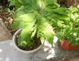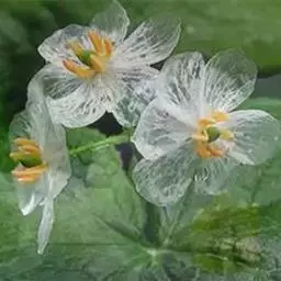 山荷叶属为多年生草本,有匍匐状、粗厚、具节的根茎;根生叶1枚,大,盾状,分裂,生于粗厚的柄上其状如伞,…