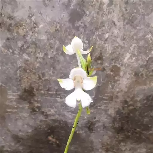 花瓣近长圆形或倒披针形,与萼片等长,或有时稍短,中部宽3.5-5毫米,先端稍钝,基部收狭,具3条脉,两侧的2条常分支,无毛;唇瓣白色,轮廓为扇形,与整个蕊柱翅合生,约等长于萼片,3深裂;侧裂片镰状倒卵形或楔状倒卵形,比中裂片大,先端向中裂片弯曲,基部约一半合生在蕊柱翅的外侧边缘;中裂片倒卵状楔形,先端深凹缺,前端边缘有时具不整齐的齿;唇盘上具3条膜片状褶片;褶片平直,全缘,延伸到中裂片的中部,前端呈三角形隆起;距圆筒形,伸直或稍弯曲,长5-10毫米,向末端变狭,外面疏被短毛;蕊柱长约4毫米,上端扩大,蕊柱翅下延到唇瓣基部;蕊喙2裂;裂片牙齿状三角形,长约0.6毫米,先端急尖;药帽在前端稍收狭,先端近截形;花粉团棒状,长约1.8毫米。花期4-5月。
