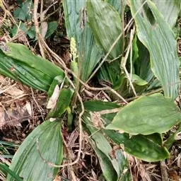 三棱虾脊兰:根状茎不明显。假鳞茎圆球状,粗约2厘米,具3枚鞘和3-4枚叶。假茎粗壮,鞘大型,先端钝,…