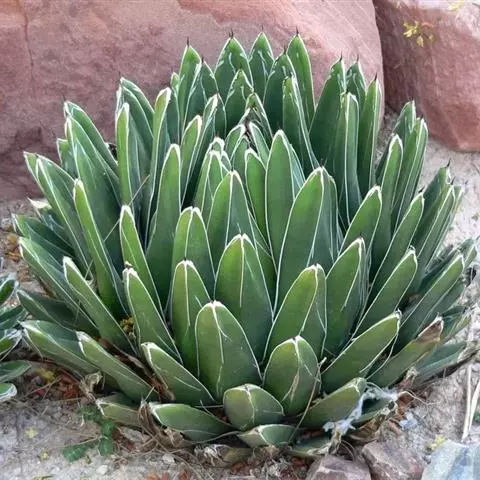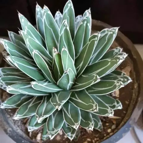 皇后龙舌兰是天门冬科、龙舌兰属多年生草本多浆植物。无主茎,叶丛生,莲座状,株幅40厘米。叶较多,…