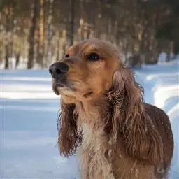 耳朵:柔软,窄而细腻,被长长的毛发所遮盖,向内折叠,末端呈卵形。耳廓能延伸到鼻尖。耳朵位置低,不应该高过眼睛。过分长或位置太高的耳朵属于缺陷。