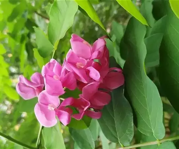 毛洋槐(学名:Robinia hispida L.)是豆科,刺槐属落叶灌木,高1-3米。幼枝密被紫红色硬腺毛及白色曲柔毛,二年生枝密被褐色刚毛,叶轴被刚毛及白色短曲柔毛,上有沟槽,小叶5-7(-8)对,椭圆形、卵形、阔卵形至近圆形。总状花序腋生,花3-8朵,苞片卵状披针形,花萼紫红色,斜钟形,花冠红色至玫瑰红色,花瓣具柄,旗瓣近肾形。雄蕊二体,花药椭圆形,子房近圆柱形,密布腺状突起,沿缝线微被柔毛,柱头顶生,胚珠多数,荚果线形,果颈短,有种子3-5粒。花期5-6月,果期7-10月。