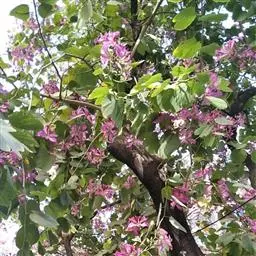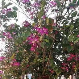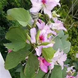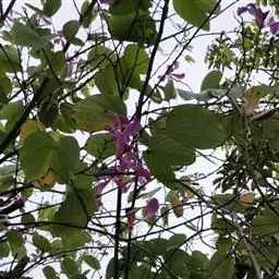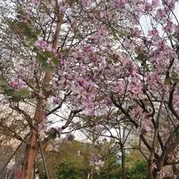 洋紫荆:落叶乔木;树皮暗褐色,近光滑;幼嫩部分常被灰色短柔毛;枝广展,硬而稍呈之字曲折,无毛。叶近…
