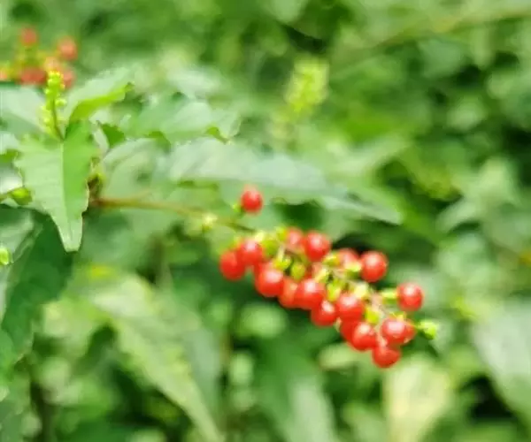 蕾芬,别名数珠珊瑚、小商陆、胭脂草, 半灌木,高30-100厘米。茎直立,枝开展,幼时被短柔毛。