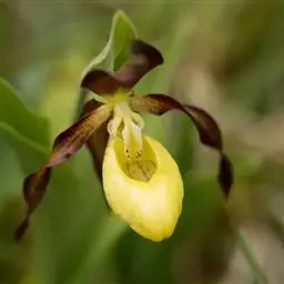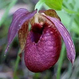 大花杓兰因其形状酷似一个口小肚大的囊袋,又名“大口袋兰”。花体呈紫红色,花朵直径5厘米至6厘米,…